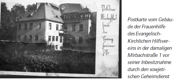Im August 1994 hatte der russische Militärgeheimdienst das bis dahin 49 Jahre lang besetzte und als „Militärstädtchen Nr. 7“ genutzte Areal in Potsdam-Neuer Garten wieder verlassen und die Gebäude an die Bundesrepublik Deutschland zurückgegeben, die sie ihrerseits an die früheren Eigentümer zurück übertrug. So ging auch das zum Gefängnis umgebaute – oder besser: entstellte – Pfarrhaus der Frauenhilfe des Evangelisch-Kirchlichen Hilfsvereins (EKH) an diesen zurück.